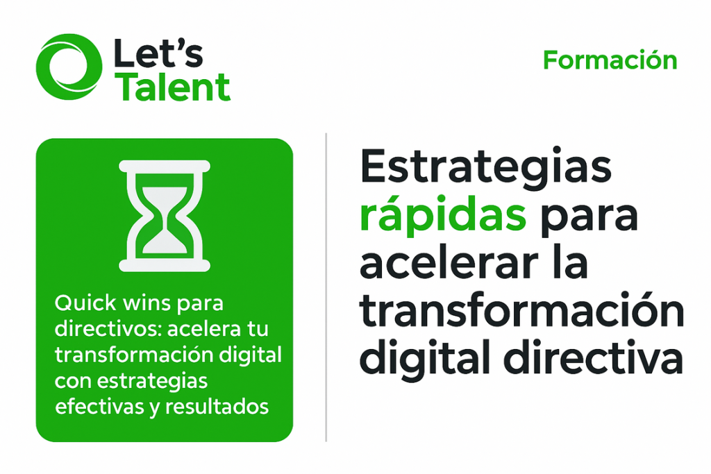 La transformación digital no debe ser un proceso interminable ni una fuente de estrés para la alta dirección. En Lets Talent, ofrecemos diagnósticos personalizados y propuestas de formación que ayudan a directivos ocupados a lograr resultados rápidos y sostenibles. Contacta con nosotros para descubrir cómo podemos acompañarte en este camino con garantías de éxito.